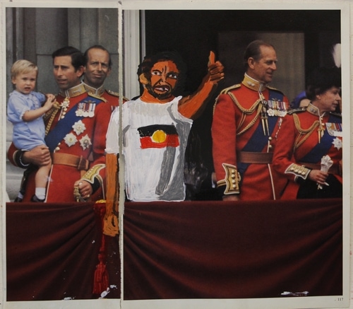 The debut artist book from Vincent Namatjira. Featuring superb reproductions of Namatjira’s 2020 series ‘The Royal Tour’, comprised of 20 works where Namatjira painted directly onto pages from found commemorative royal photo-books. The repurposed images in The Royal Tour are rich in irreverent humour and continue Namatjira’s ongoing interrogation of Australia’s colonial history and how this is intertwined with his own personal history. The Royal Tour includes an essay by Tony Albert.